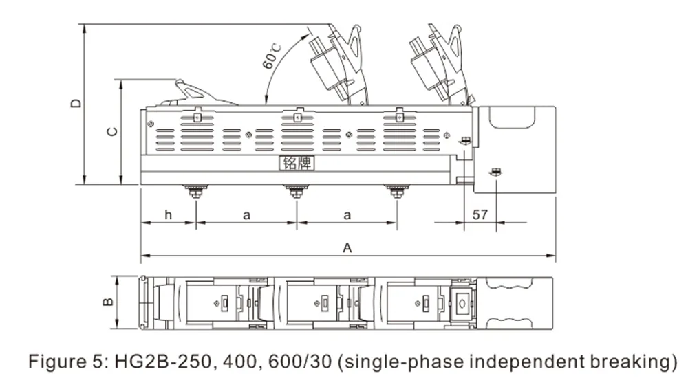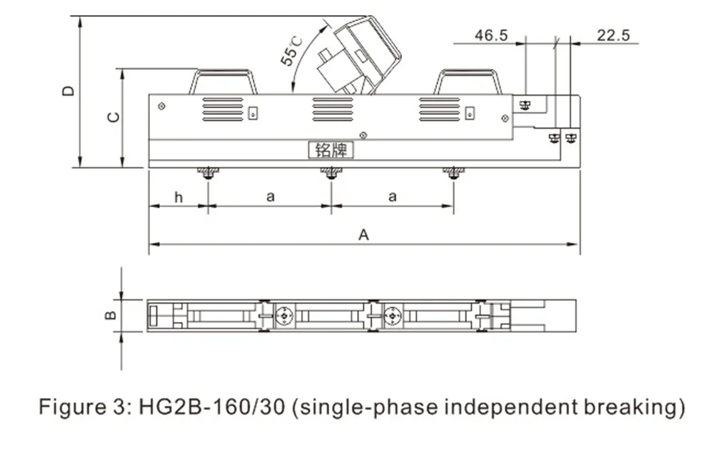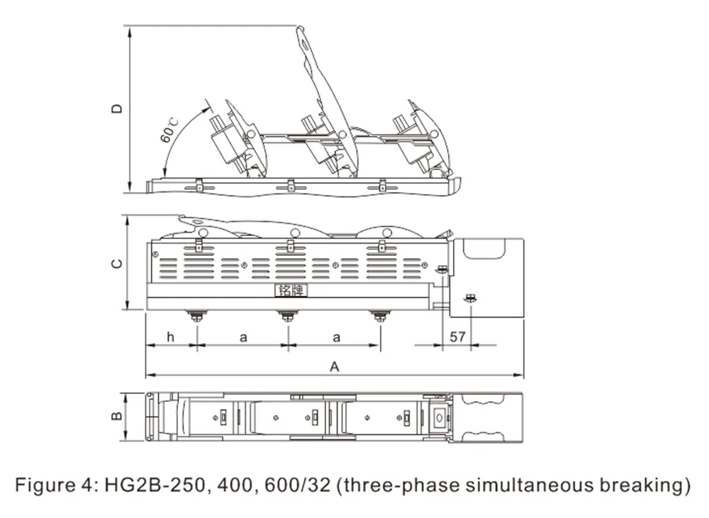 HG2B-160 ~ 630А-ның өлшемдері және орнату өлшемдері In-Line Inter Buce қосқышын ажыратқыш.
